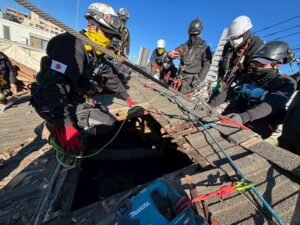 令和6年7月上旬に東京都内で解体建物を利用して、震災における倒壊木造家屋からの救出を想定した都市型捜索救助訓練を実施しました。